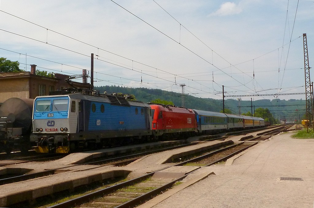 Čistý, ale žiaľ nečinný taurus 1216.233 sa vracal do Viedne s príprahom esa 362.111. Snímok zachytáva túto dvojicu rušňov v čele EC 77 Antonín Dvořák ako prechádza stanicou Ústí nad Orlicí. Ani ZSSK, to nemajú s 350 ružové: dnes som na EC vlakoch do a z Prahy nevidel jedinú 350, dokonca na EC 170 Hungaria do Prahy išlo cargo slovenské eso 363.100.