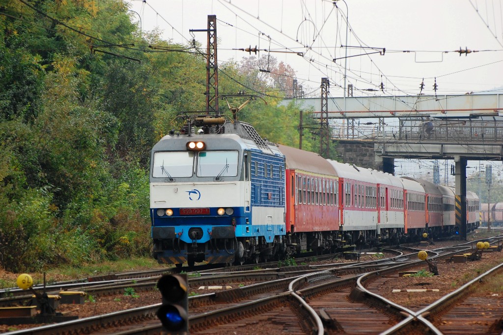 350.007 s vlakom R601 pri výjazde zo stanice Púchov dňa 9.10.2007