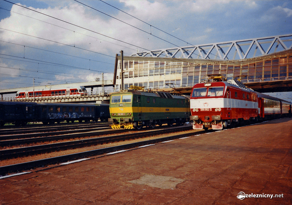 Nádherný večer v popradskej stanici a stretnutie minulých generácií náterov... Na osobáku oddychuje 162.005 a 350.002 je pohotovosti k odchodu s IC 5oo Tatran do Bratislavy.