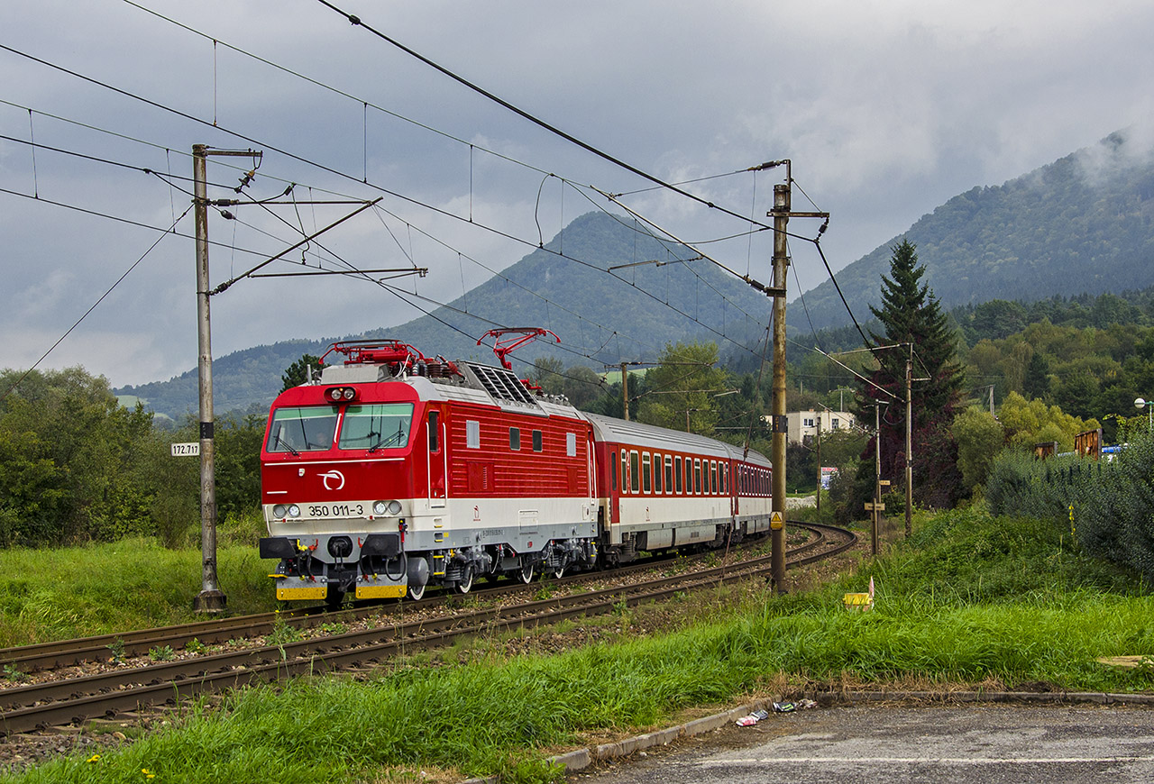 350 011, ktorá pri minuloročnej zrážke s cestným posýpačom pri obci Beňadiková utrpela fatálne poškodenia a tragicky na nej skonal náš kolega, sa konečne objavila na trati. Keď som ju prvý krát videl rozbitú v bratislavskom depe, ostal som v šoku, a neveril som, že z nej niekedy niečo bude, ale ŽOS Vrútky tentokrát dokázali nemožné a 11tka vlastnou silou potiahla prvé dva vlaky podľa obehu, 615 a 502. Dúfam, že jej to vydrží čo najďalej