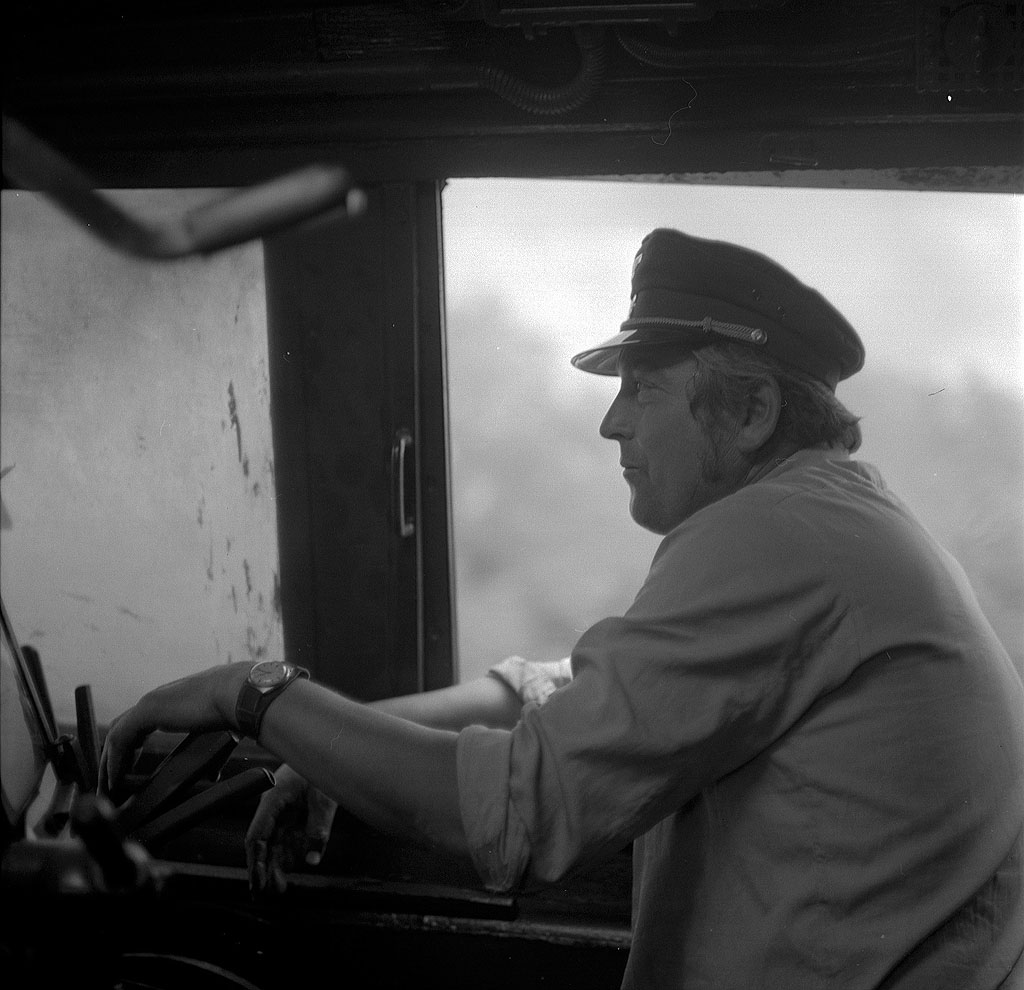 Rušňovodič Viliam Babulic na Leopoldovskom štokri vezie mimoriadny parný vlak s hosťami Radošinského Naivného divadla a skupinou Lojzo do Radošiny na akcii Šíny do Radošiny.