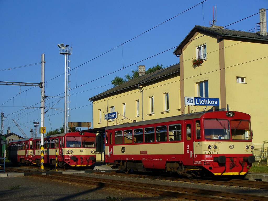 podvečerné stretnutie troch kredencov na Lichkovskej stanici, zatiaľ co "Kristýnka" 810.541 ide ako zrýchlený vlak z Miedzylesia do Českej Třebovej, zadná dvojica tvorí MOs do Králikov.