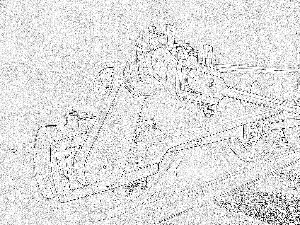 Na snímku je detail klikovky v perokresbě parní polotendrové mašiny BEB I.103 Kladno 1855