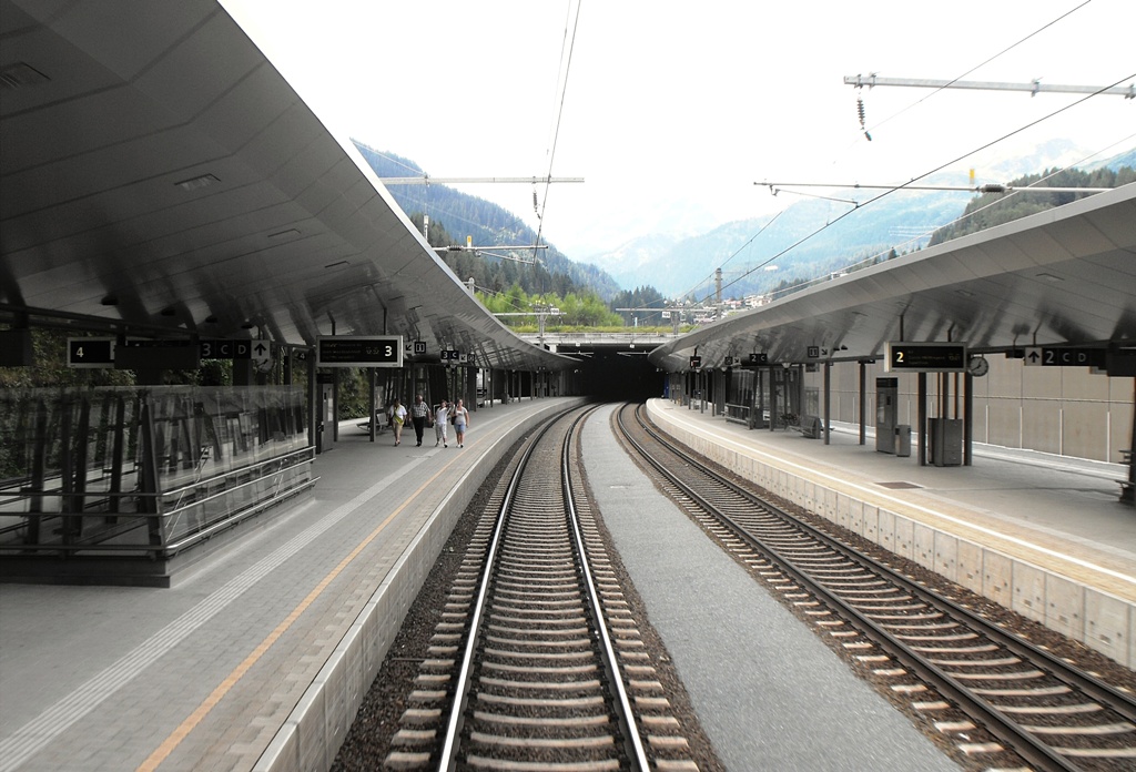 Najdlhší železničný tunel Rakúska (10 648 m)- pohľad z vlaku na východný portál. Tunel je dvojkoľajný v celej svojej dĺžke; 4x výhybka, osvetlený po celej dĺžke; a pozor :btw: namiesto trolejového vedenia je v tuneli nainštalovaná nad každou traťovou koľajou pevná trakčná koľajnica. Koľajové lôžko a zvršok = pevná jazdná dráha po vzore VRT. Česť rakúskym tunelárom :super: