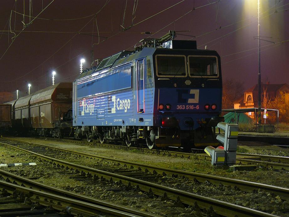 Budějovické Reko ESO 363 516 čekající na svůj vlak Vn 47213 v Nymburce městě