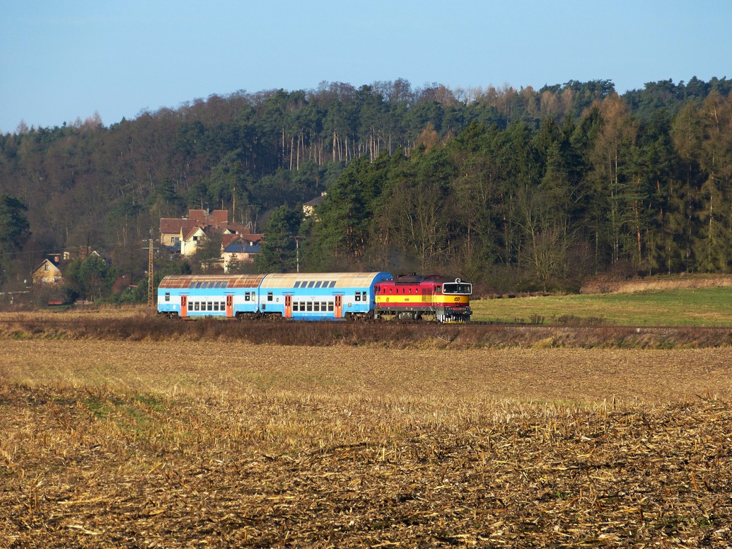 Osobní vlak do Čerčan v čele s brejlovcem 754 044