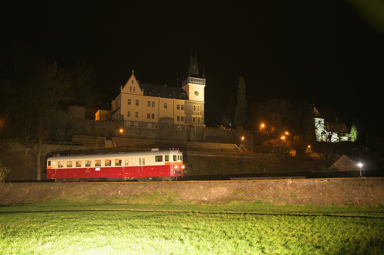 Loďák pod Zručským zámkem při jedné podařené noční fotojízdě