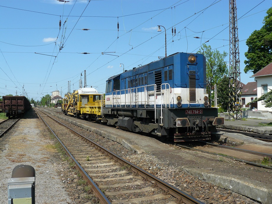 Pracovní vlak TSS Grade v čele se 740 794 z Chlumce n.Cidlinou do Boletic n.Labem. Zachycen v Nymburce městě při úvraťové jízdě kvůli otočení pracovního stroje.