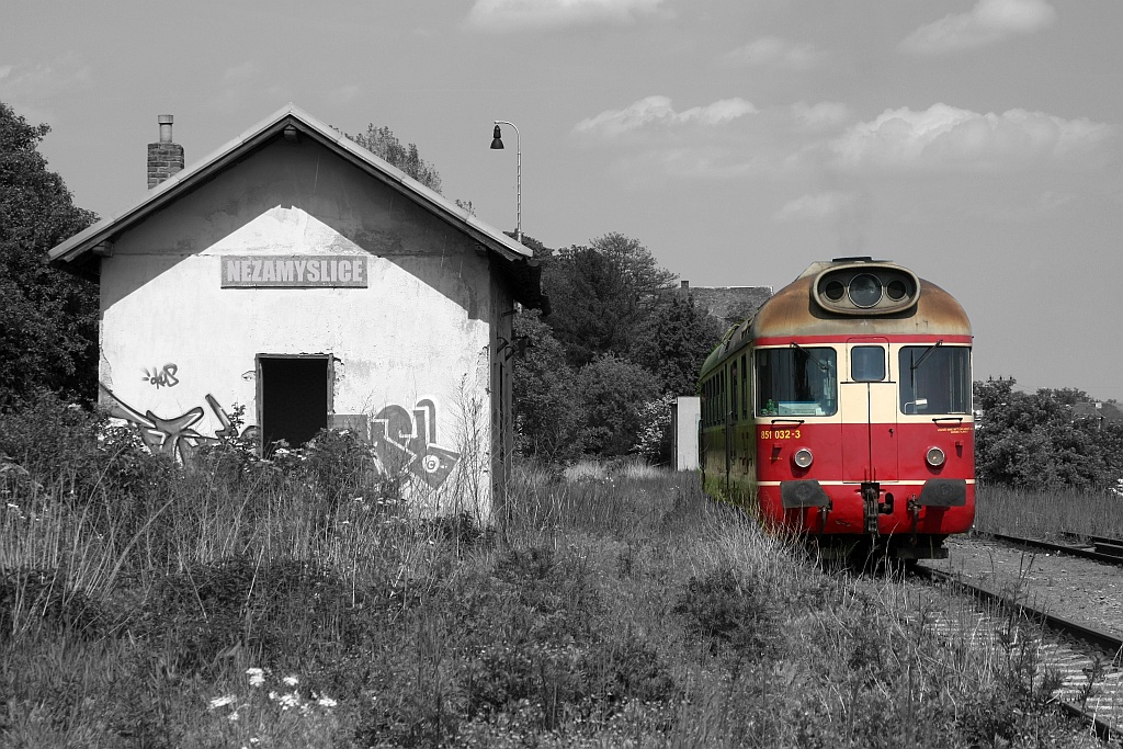 V rámci zvláštní jízdy motorového vozu 851.032 do Tovačova došlo i na zastavení a zapózování na místním nezamyslickém nádraží z něhož odjížděly dříve vlaky do Morkovic ...