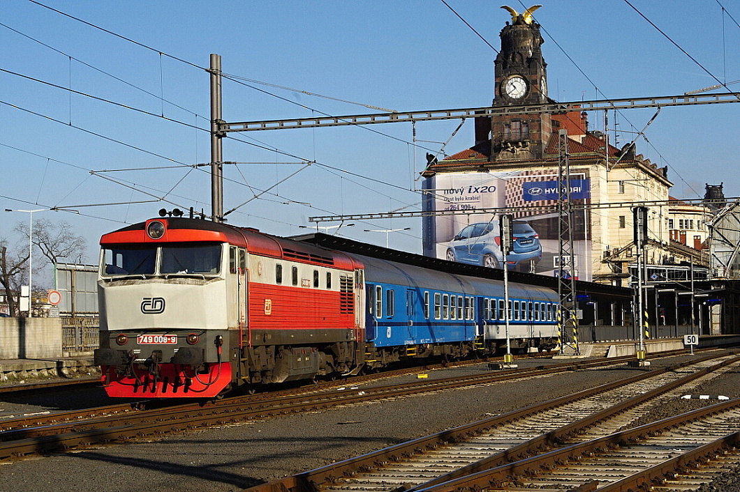 Čím dál vzácnější setkání s lokomotivou 749 na pražském hlavním nádraží.