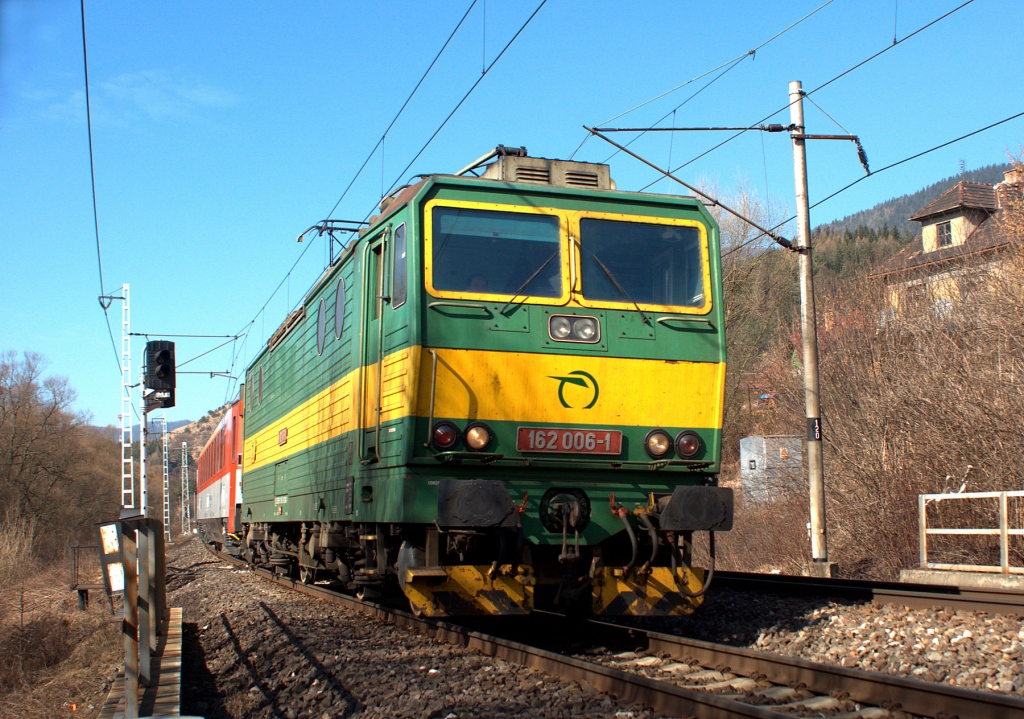 162.006-1 dnes na skúšobnej jazde s vagónom z Žos Vrútky.Typ vagóna sa mi nepodarilo zachytiť vzhľadom na moju pozíciu.Len som zachytil že sa jednalo o osobný vozeň luxusnejší asi Ampeer.Označený bol už pre odberateľa teda ČD.