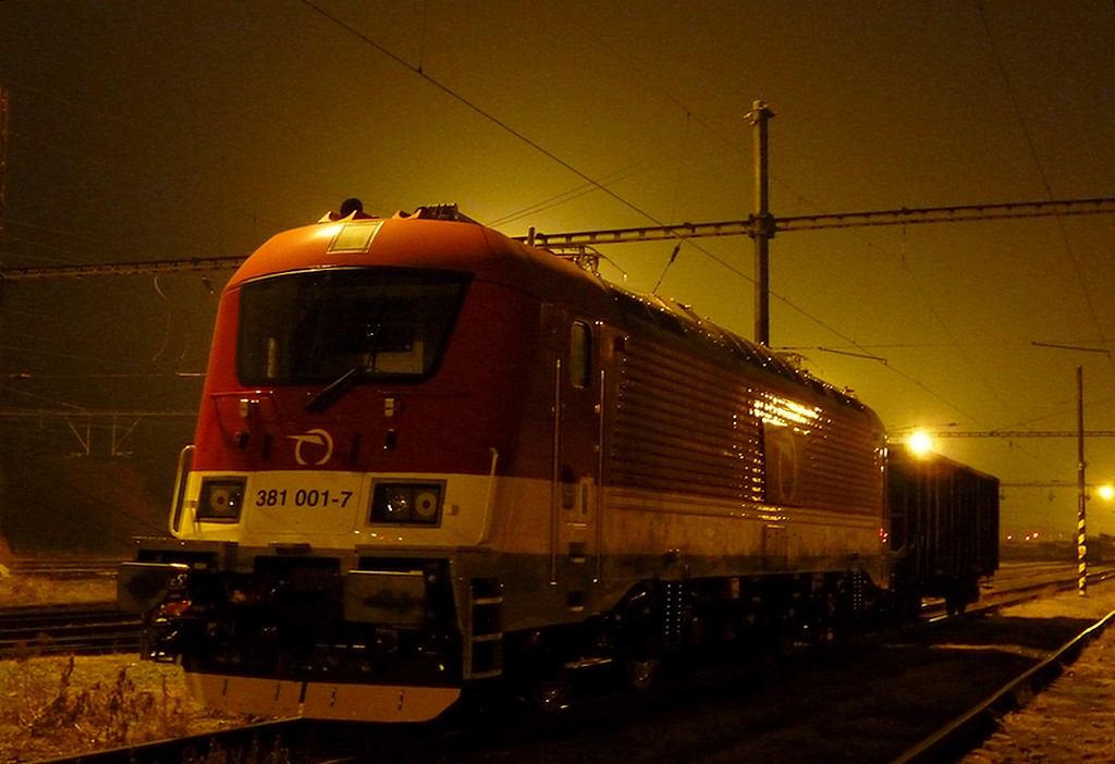 Finalizácia výroby dlho očakávaného stroja 381.001 ZSSK je na konci a teraz mašinku čaká séria skúšok na Železničnom skúšobnom okruhu v Cerheniciach. Snímok z Kolína zr.nádr. zachytáva nocou odpočívajúcu 381.001 pred samotnou prepravou na skúšobný okruh. Mašinke prajeme úspešné absolvovanie všetkých skúšok!!