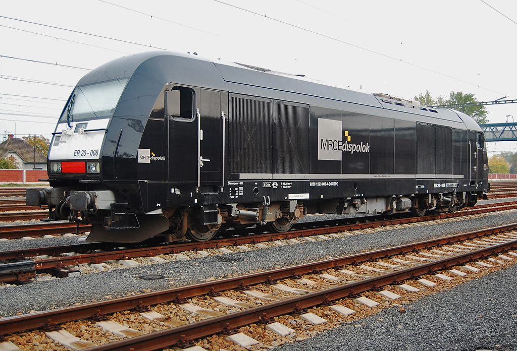 Dnes po dlhšej dobe znova zavítal na Slovensko rušeň ER 20-008 MRCE Dispolok-u,ktorý doviezol záťaž z Nemeckého Furth im Wald-u do Leopoldova.Jednalo sa o 17 ložených vozňov radu Zans.Celú trasu absolvoval na licenciu dopravcu Railtans. Hmotnosť vlaku bola cca 1400 a cesta z Furth im Wald-u trvala cca 13 hod.Rušeň sám zvládol aj trať Kúty - Trnava!!,kde je normatív hmotnosti pre hdv radu 240 950t!! a to bez postrku.Na spiatočnú cestu sa vidá zajtra t.j. 16.10.