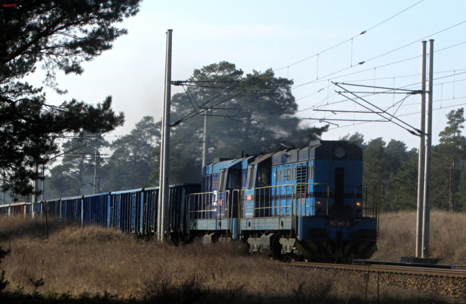 Dne 8.2.14 projížděl nákladní vlak společnosti ODOS v čele 742 505 + 742 540 u stanice Bzenenec Přívoz.