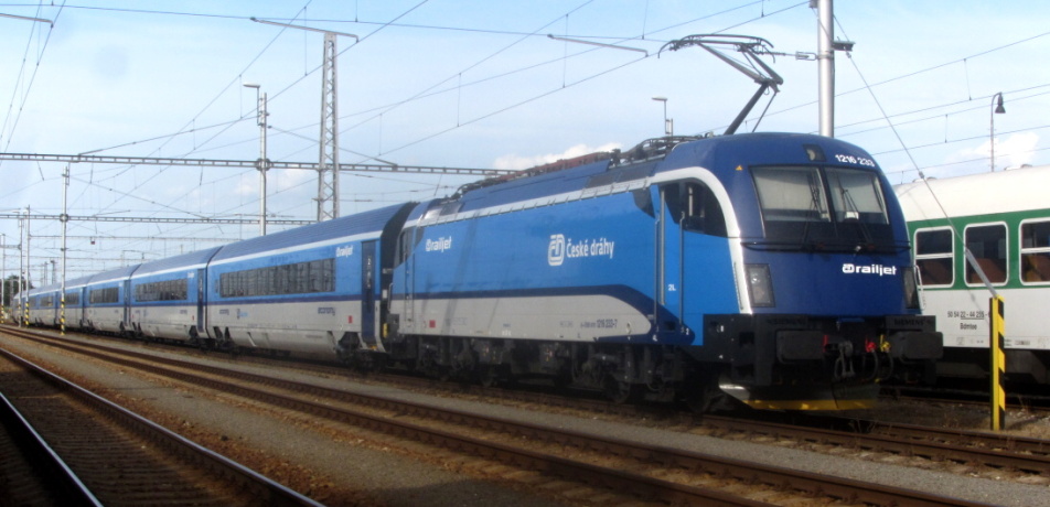 Dne 24.5.14 na další vykon čekal soupravovy vlak RailJet ve stanici Břeclav.