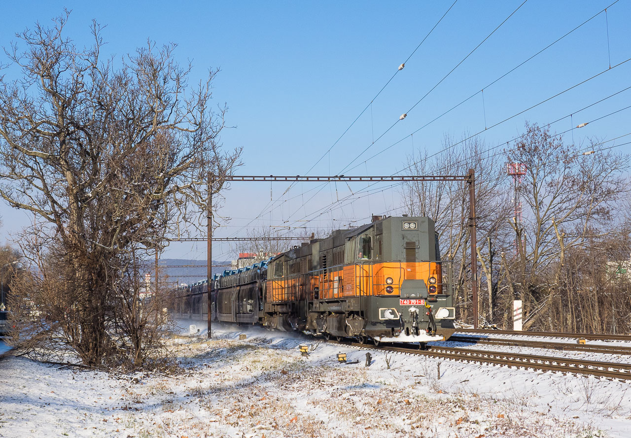 Dnes to počasie ušlo, krásne slnečno no včera večer a v priebehu noci trocha nasnežilo, no taká dvoj hodinovka so snehom a slnkom dnes potešila, ani som nečakal že sa dnes bude dariť okrek AWT išlo aj niečo naviac,ale o tom potom, ja sám som dnes prvý krát cvakol AWT 740 s auto vozňami, vozbu týchto súprav zabezpečuje zo a do Trnavy dopravca AWT svojimi rušňami a to smerom do Petržalky a späť. Vlaky chodia v podstate denne, či už ložené alebo prázdne alebo ako Rv .