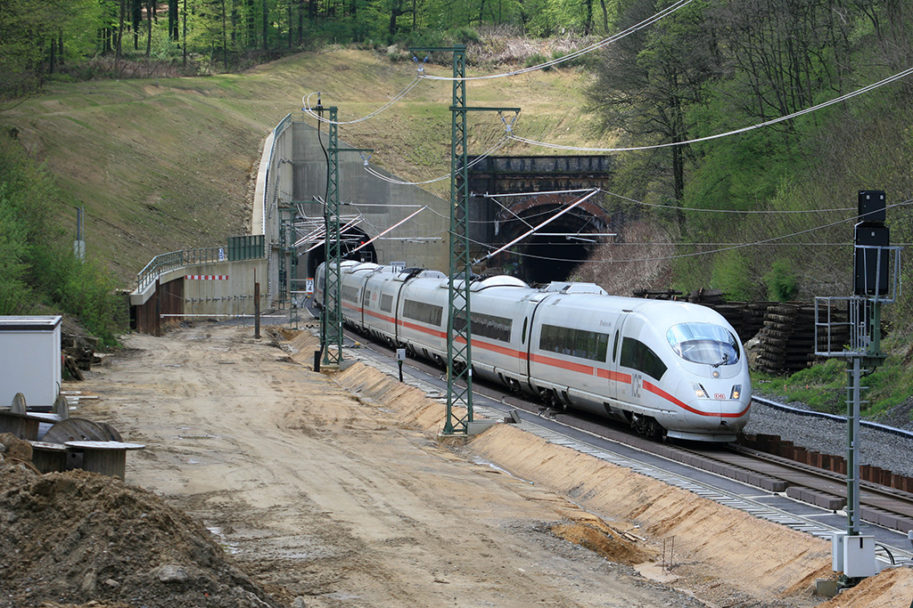 vpravo starý dvojkoľajný Aachener Buschtunnel čakajúci na rekonštrukciu.