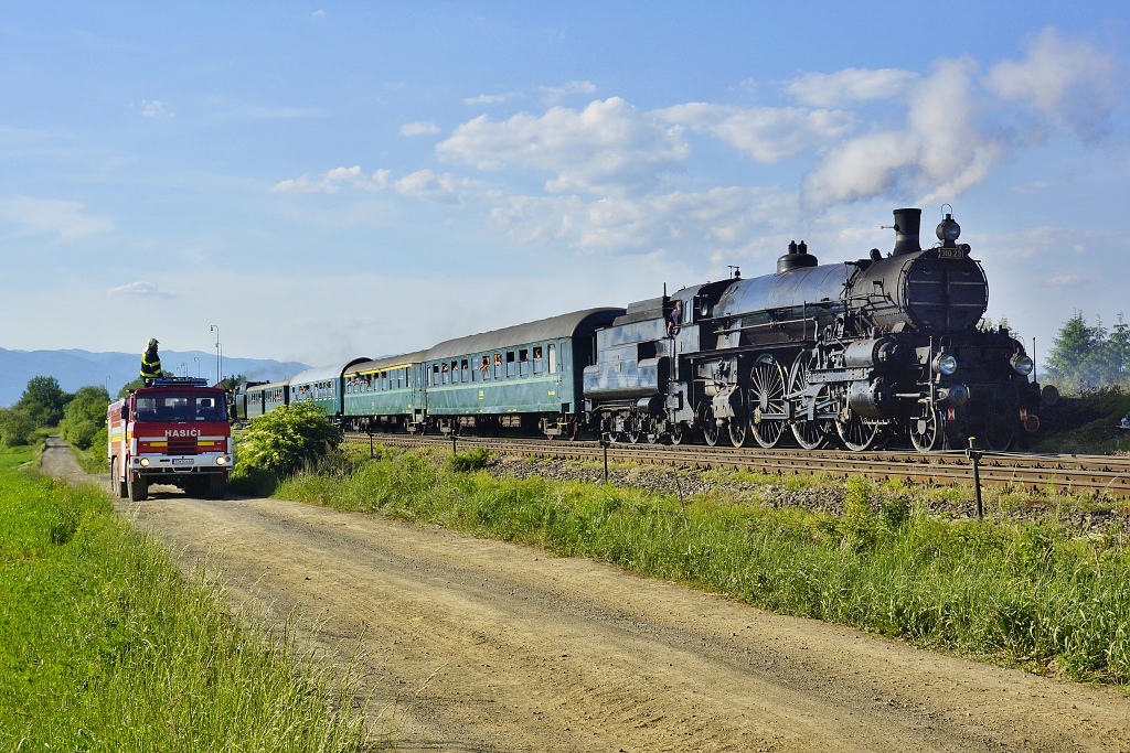 Super fotka ! Vypadá to, že dnes místo požárního vlaku jede mimořádně požární auto a hasič kouká, zda už něco nezačíná hořet, že by již začal hasit dříve než polní cesta uhne od koleji.