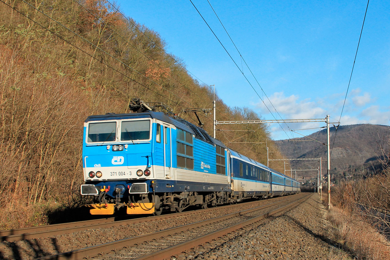 Bastard s IC 171 Carl Maria von Weber v poslední den grafikonu 2016-2017 kdy pomalu končí na vozbě IC mezi Prahou a Dresen.