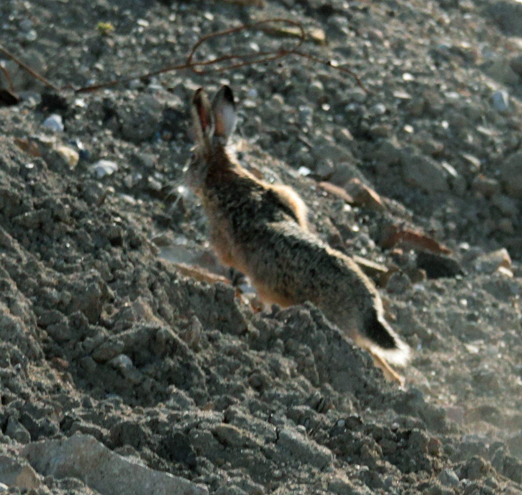 ak si detailnejšie pozriete tohoto zajaca-je až neuveritelné, že za tak krátky čas ako je 1/500 sek. sa jeho telo dokáže takto vymrštiť a na fotke natiahnuť do neidentifikovatelného tvaru.....ale uši sú nezvratný dôkaz že to je zajac. No bol odo mňa tak 3-4 metre.