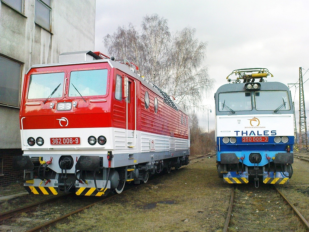 Dnes sa pred bránou vrútockej ŽOSky stretli dve dvojsystémové "šestky", ktoré okrem rovnakého inventárneho čísla spája aj spletitá skúšobná prevádzka nových a na našich tratiach doposiaľ neoverených inovačných celkov. (350.006 - zabezpečovač ETCS, 362.006 - nová koncepcia riadenia)